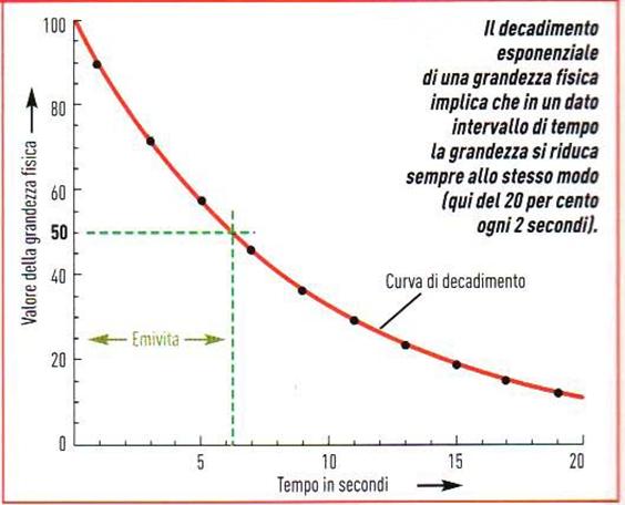 assume il valore 50. Si trova subito che l'emivita è di 6,2 secondi.