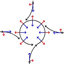 (Schema delle forze agenti nell'intorno ad un vortice. Il gradiente di