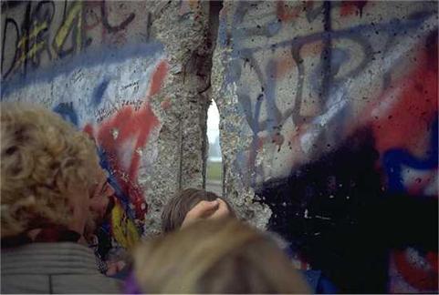 (Lfimmagine dei primi attimi della caduta del muro a Berlino, che pose fine alla divisione della Germania)