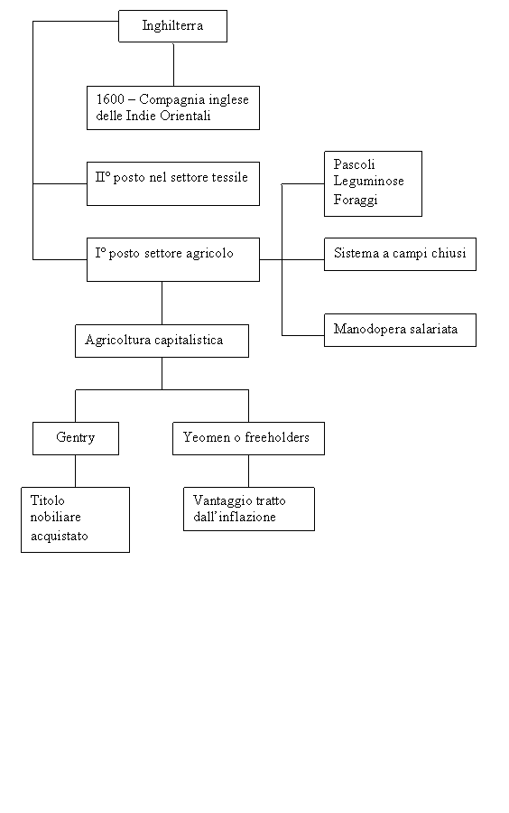 Già nel XV secolo in Inghilterra si era dato il via alle recinzioni della terra, passando da un sistema a campi aperti ad uno a campi chiusi (enclosures); sul campo in questione, era il proprietario che decideva cosa applicare, se il pascolo o la coltivazione di un determinato prodotto. Durante la crisi in cui caddero tutti i paesi europei, i prezzi ovviamente salirono ma, con l'arresto della crescita demografica, cominciarono nuovamente a scendere; in questo modo, però, i proprietari terrieri perdevano finanziariamente e quindi dovettero inventare qualcosa per guadagnare comunque: eliminarono le richieste di piccoli canoni in natura o denaro da parte delle famiglie contadine e avviarono la gestione di aziende basate sulla manodopera salariata. Una parte di aristocrazia terriera passò a questa nuova gestione della terra, detta "capitalistica", benché la maggior parte della borghesia venne danneggiata prima dall'inflazione del Cinquecento e poi dalla caduta dei prezzi del Seicento.