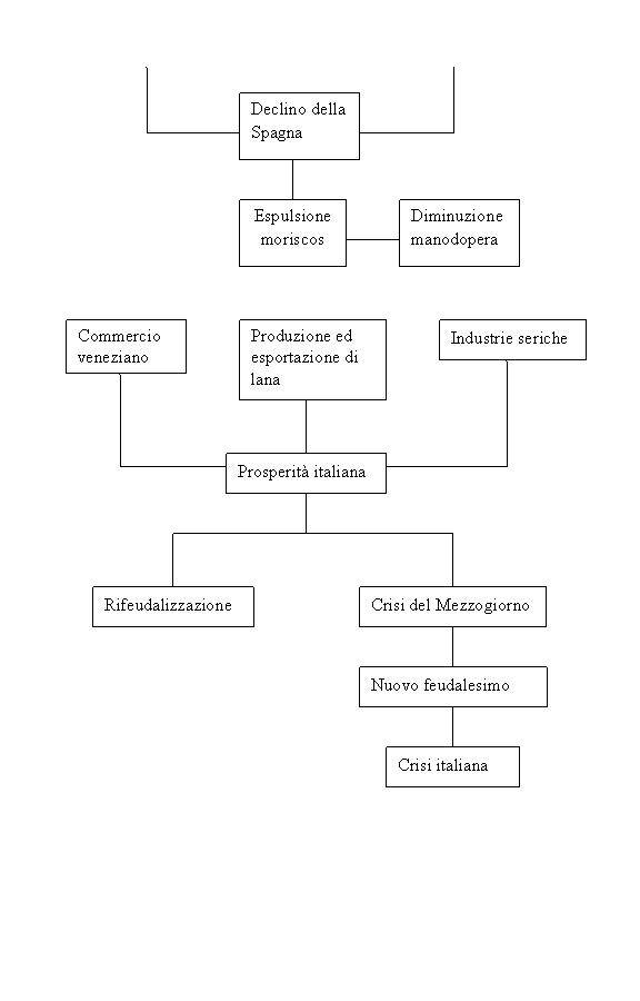 Due furono le cause principali del declino spagnolo: la diminuzione del tesoro americano che, fermandosi nelle colonie, non arrivava più alla madrepatria e il non saper fronteggiare la crisi da parte della Castiglia.