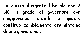 La crisi del sistema politico liberale: ormai la politica liberale aveva fallito, non era più in grado di governare.