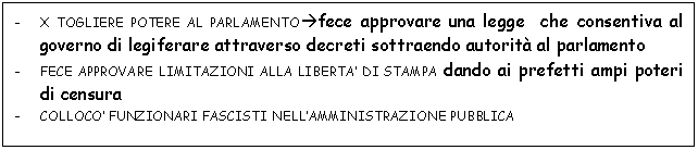 Il periodo che va dal '22 al '25 viene chiamato dagli storici "periodo di transizione" nella quale Mussolini mantiene le componenti istituzionali e svolge un governo moderato preparandosi per togliere potere al parlamento per poi creare un vero e proprio regime fascista.