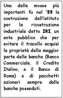 protezione dei grandi gruppi di industriali operanti sul mercato interno sia attraverso le tariffe doganali sia il salvataggio ad opera dello stato delle imprese in difficoltà