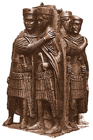 'tetrarchi', i quattro imperatori Diocleziano, Galerio, Massimiano e