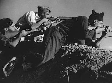From Madrid (which at that time was under siege) he personally took part in some military offences, then he reported on the war for an American newspaper from the major fronts and in December 1937 he had the great satisfaction of being one of the first to enter Teruel, freshly conquered by the Republicans. Nevertheless, he began to dislike the political fight within the Republican forces, above all among the government exponents, the chiefs of the army and the representatives of the International Brigades.