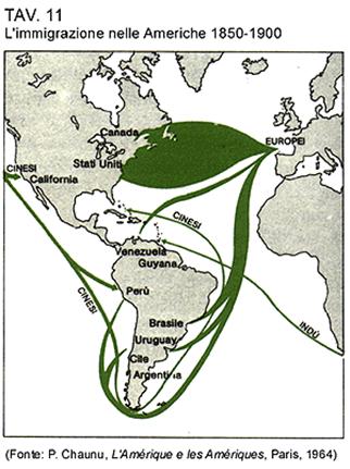 le migrazioni verso l'America meridionale furono rilevanti soprattutto fino
