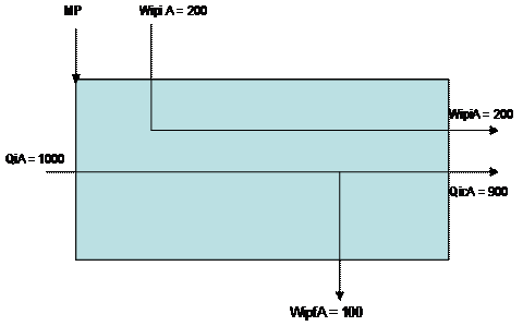 Conviene, nel secondo reparto, data la logica FIFO, lasciare separati i due flussi di WipiA e di QicA, che sono trasferiti al secondo reparto così come sono completati nel primo reparto.