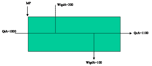 Quantità iniziata nel periodo del prodotto A pari alla quantità completata nel reparto precedente;