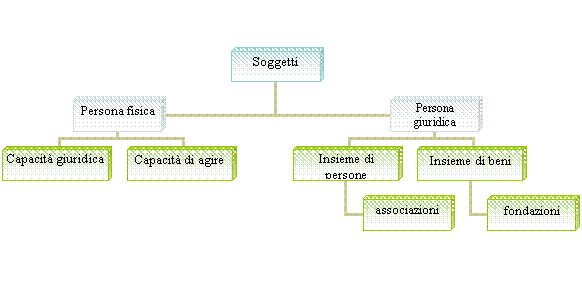 Persona fisica → per il diritto è l'uomo, inteso come centro di interessi, di diritti e di doveri. Oggi, tutti gli esseri umani, dalla nascita e per tutta la vita, sono dotati di capacità giuridica, e quindi soggetti del diritto.