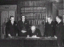 La Costituzione italiana fu firmata il 27 dicembre 1947 dal primo Presidente della Repubblica Italiana, Enrico De Nicola, dal Presidente dell'Assemblea costituente, Umberto Terracini, dal presidente del Consiglio dei ministri, Alcide De Gasperi, e fu vistata dal ministro della Giustizia di allora (detto anche Guardasigilli).