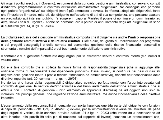 politici, poiché è il titolare unico della gestione dell'azione amministrativa,