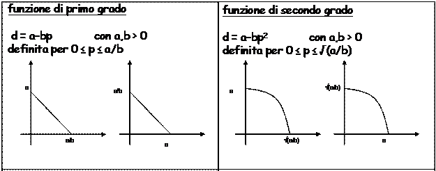 La funzione di domanda è decrescente rispetto al prezzo, ciò significa che all'aumento del prezzo corrisponde una diminuzione della domanda.