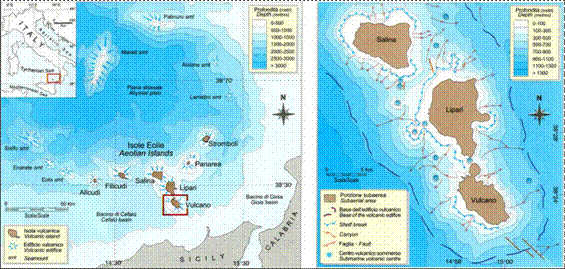 Il vulcanismo delle isole Eolie è connesso alla subduzione della placca africana sotto quella europea e dati sismologici definiscono un piano di Bienoff immergente verso NW. La distribuzione degli ipocentri indica una struttura a cucchiaio con una superficie sub verticale nei primi 0 km e meno inclinata 45 -