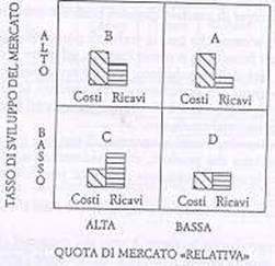 - Caso B: Sono alti sia il tasso si sviluppo del mercato sia la quota del mercato che l'impresa possiede.