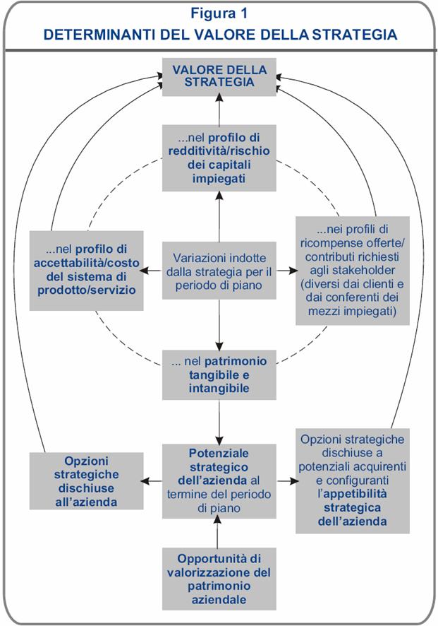 I fattori determinanti del valore della strategia (Figura 1) possono configurarsi nel contributo positivo che essa apporta agli aspetti di :