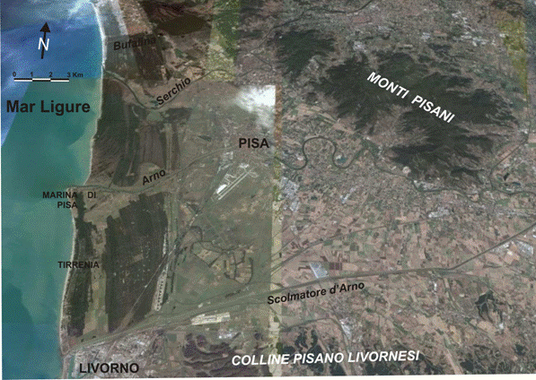 La Pianura di Pisa (fig. 1.1) è confinata verso Nord Est, dal Monte Pisano e dai Monti D Oltreserchio, verso Sud, dalle Colline Livornesi e Pisane; la sua fascia costiera linea