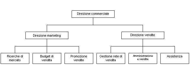 Struttura di una piccola impresa con prima specializzazione delle attività nel settore vendite (altrimenti limitato alla sola forza vendita). Il marketing in questo caso può essere subordinato alla direzione vendite, oppure può accadere il viceversa.