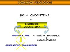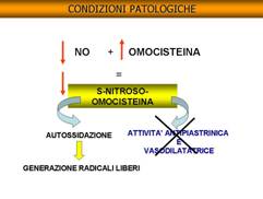 Infatti, in condizioni fisiologiche l'ossido nitrico reagisce con l'omocisteina circolante, formando S-nitroso-omocisteina (SNOHO). Quest'ultima esercita una potente attività antiaggregante piastrinica e vasodilatatrice ed ha un'emivita di 15 minuti, ben superiore a quella dell'ossido nitrico che è di pochi secondi. La nitrosilazione dei gruppi sulfidrilici dell' omocisteina, ne previene l'autossidazione e, quindi, la generazione di radicali liberi.(fig.3).