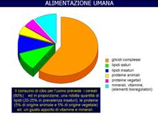 Pertanto un uso razionale di alimenti prevede il 60-70% di cereali; il 20-25 % di lipidi, prevalentemente insaturi; il 10-15% di proteine di cui il 5% di origine animale ed il 5% di origine vegetale, ed un giusto apporto di vitamine, minerali ed acqua (fig.12).