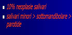 E' un tumore che interessa per lo più le salivari minori e meno le salivari maggiori. Infatti a livello del palato è opportuno andare cauti perché sappiamo che può trattarsi di una malignità. Bisogna prestare attenzione in quanto anche il citologico può dare anche falsi negativi perché comunque vi è un certo margine d'errore. E' possibile attuare in campo operatorio un'intraoperatoria se ci troviamo di fronte ad un'incognita circa il comportamento del tumore(se benigno o maligno .