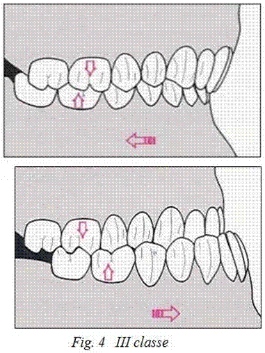 - III CLASSE: detta anche mesio- occlusione, si ha quando la cuspide mesio-vestibolare del primo molare superiore ingrana distalmente al solco mesio-vestibolare del primo molare inferiore.)