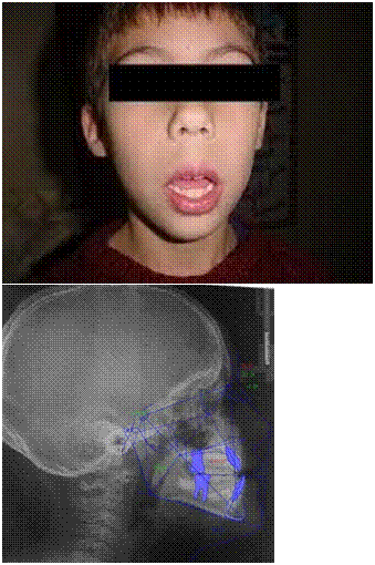 Vedete questa è una facies adenoidea: Abbiamo una dimensione sia anteriore che posteriore, con la bocca leggermente aperta, la faccia lunga e il labbro che non riesce a coprire totalmente le arcate dentali.
