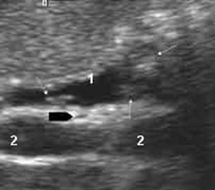 Fig 2 esame ultrasonografico - dilatazione della via biliare principale(1)