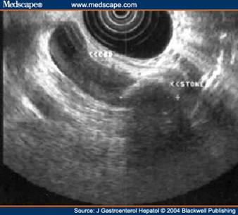 Ultrasonografia endoscopica consiste nell'introduzione di una sonda ad ultrasuoni ad alta frequenza ( 7.5-12 Mghz) nel sistema digerente fino al duodeno sotto guida endoscopica. Un pallone riempito d'acqua è usato come finestra acustica.La sensibilità e la specificità di questa tecnica sono riportate in un range che va dall'85 sino al 100%.Questa tecnica garantisce risultali significativamente migliori rispetto all'approccio trans addominale ma risulta penalizzata sotto molteplici aspetti tra cui ricordiamo la notevole invasività , il consistente aumento dei costi e la necessità di disporre di personale altamente specializzato. 22
