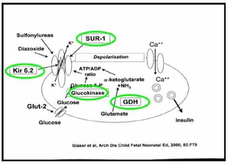 Iperinsulinismo, rappresenta una causa frequente (55%) di ipoglicemia nel bimbo con meno di un anno; può essere dovuto ad iperplasia diffusa o focale, ad adenoma beta-cellulare, sindrome di Beckwith-Wiedemann, oppure ad una forma leucino-sensibile. Le mutazioni possono interessare diversi enzimi che entrano nel metabolismo del glutammato, del glucosio, sui recettori delle sulfoniluree.