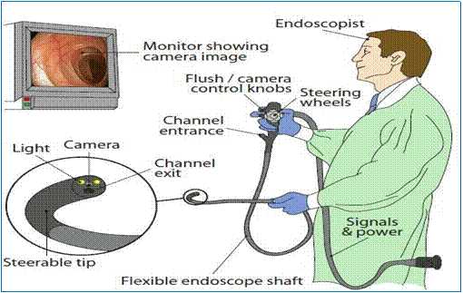 digitale per la visualizzazione della mucosa interna dell'intestino, nella seconda dei led o fibre ottiche come fonte di luce mentre la terza permette il passaggio di una specifica strumentazione o l'insufflazione di aria per dilatare l'intestino nel caso in cui fosse collassato. Quest'ultima parte facilmente manovrabile dal medico può essere curvata in due direzioni grazie alla presenza di un controllo manuale sull'impugnatura del dispositivo.