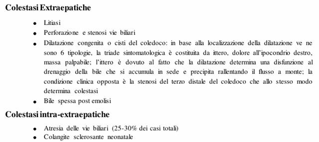 Fetopatie: Se la mamma durante la gravidanza contrae un infezione da parte di microrganismi del complesso TORCHESL (toxoplasma, rosolia, citomegalovirus, herpes simplex, sifilide, listeria) tra i tanti disturbi vi può essere un coinvolgimento epatico con epatite ad impronta colestasica.
