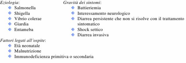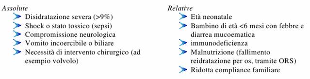 Evacuazioni superiori alle 8 al giorno ed età < 5 anni;