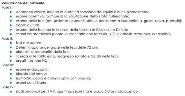 Pratica: più di 3 evacuazioni di feci di consistenza molle o semiliquida per almeno 2 giorni.