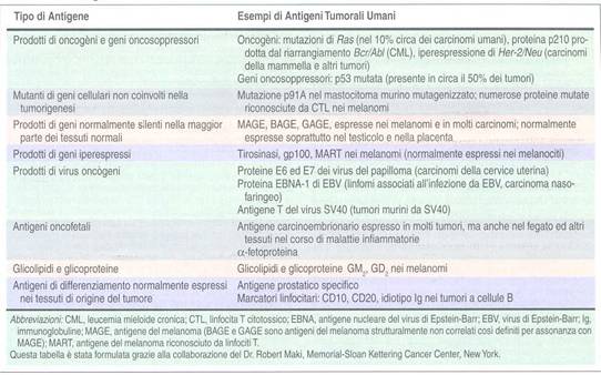 Espressioni di geni verso cui è presente tolleranza antigenica (antigeni oncofetali).