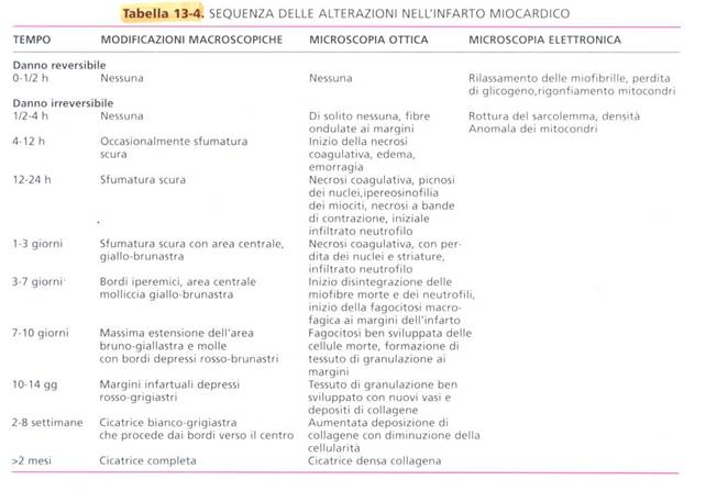 Le manifestazioni strutturali irreversibili si manifestano dopo 20-40 minuti nel miocardio gravemente ischemico.