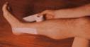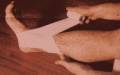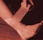 la terza fase consiste nell'apporre il primo giro di tensoplast a staffa, ricoprendo abbondantemente lo strato precedente |
