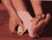 tenendo il piede allineato con caviglia a 90 gradi applicare il primo strato di cerotto a "staffa", ricoprendo i malleoli dall'interno verso l'esterno |