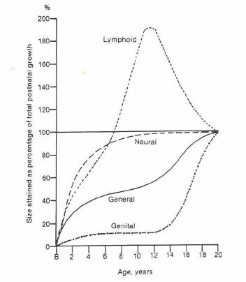 la componente linfoide del nostro organismo, ad esempio, tende ad essere più rappresentata nella prima fase della vita, il che giustifica il fatto che l'ipertrofia adenoidea del bambino regredisce con la crescita;