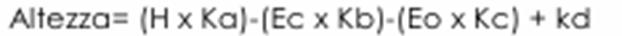 dove H è l'altezza del soggetto, Ec l'età cronologica, Eo quella ossea (calcolata non con Greulich Pyle, ma con il metodo R.U.S. ovvero Radio, Ulna e Short Bones) mentre Ka, Kb, Kc e Kd sono costanti che si ricavano da apposite tabelle. Insomma questo metodo è decisamente più complesso, ma può essere utilizzato dai 4 anni in su.