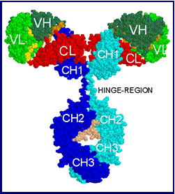 Nella parte N ternimale, ogni molecola possiede due porzioni, detti siti anticorpali, ai quali si lega l'antigene, questa porzione è nota con il nome Fab Fragment antigen binding, frammento che lega l antigene), mentre