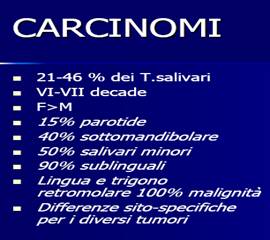 La parotide è principalmente interessata nelle patologie benigne mentre le salivari minori sono interessate per lo più da neoplasie maligne.