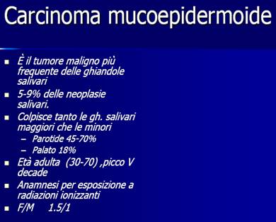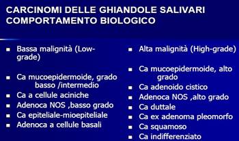Ci sono tumori come il muco epidermoide che in seno allo stesso tumore può essere sia di alto che di basso grado. Di certo risulta molto più preoccupante il carcinoma muco epidermoide di alto grado in quanto ha un alto rischio di recidiva a distanza anche di più di 0 anni,anche 5 anni. Inoltre è molto più facile che possa attraverso la componente nervosa(in pratica infiltrando i nervi) dare metastasi a livello cerebrale e poi anche a livello polmonare. Quindi è un tipo di tumore che va tenuto sotto controllo.