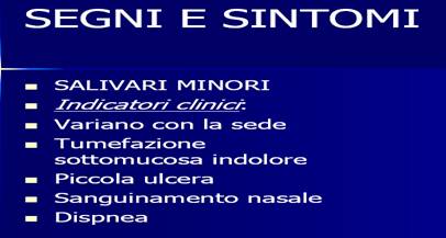 Le tumefazioni se sono localizzate o all'ostio mandibolare o alle salivari minori o a livello sublinguale devono creare qualche perplessità.