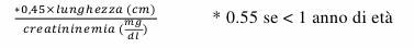 La formula (fig. 127) non permette di avere un andamento lineare con il GFR, bisognerebbe fare la clearance con l'inulina ma è molto indaginoso per il bambino.