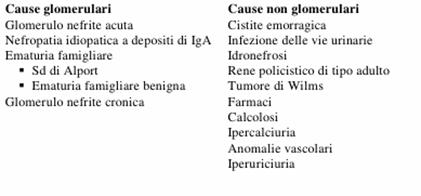 Qualità: vera o falsa, glomerulare vs non-glomerulare, microscopica o macroscopica;