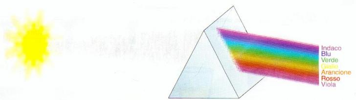La luce naturale bianca può essere scomposta in 7 colori, lo spettro visibile (indaco, blu, verde, giallo, arancione, rosso e viola), ognuno dei quali corrisponde a una diversa lunghezza d'onda .