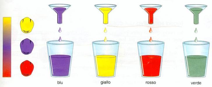 Con il sistema sottrattivi, miscelando tra loro le tinte primarie, si ottengono le tinte secondarie:l'unione di giallo e blu darà origine al verde, quella di giallo e rosso darà arancione, quella di blu e rosso darà il viola.