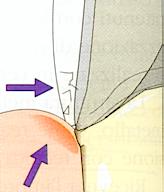 Preparazione a lama di coltello su un manufatto anatomicamente scorretto |