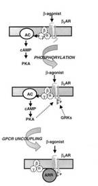 Il legame tra recettore e agonista innesca quasi immediatamente la fosforilazione di specifici residui amminoacidici di serina e treonina nel terzo loop intracitoplasmatico e nella terminazione carbossi-terminale del recettore. Il β -AR è fosforilato dalla PKA o da chinasi specifiche delle proteine G (GRK) (Bouvier at al., 1988, 1989; Hausdorff et al., 1989).